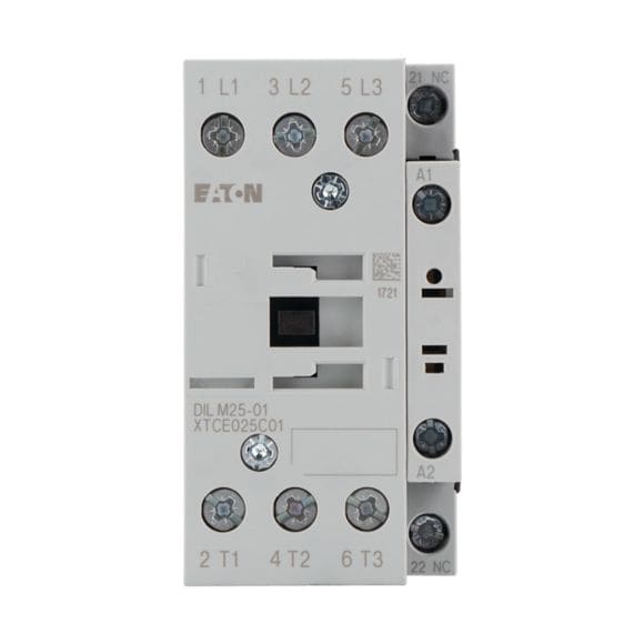 Contactor 3P 25A 11kW 400V, comandă 24VDC, contacte auxiliare NC, DILM25 – Eaton – SKU: DILM25-01-EA(RDC24)-277178